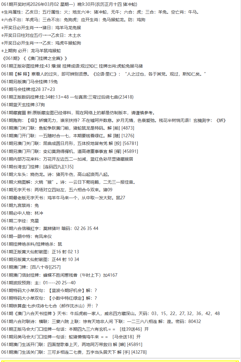 061期【澳门挂牌平特报】| 澳门挂牌原创解挂牌平特报,每期必中平特 |