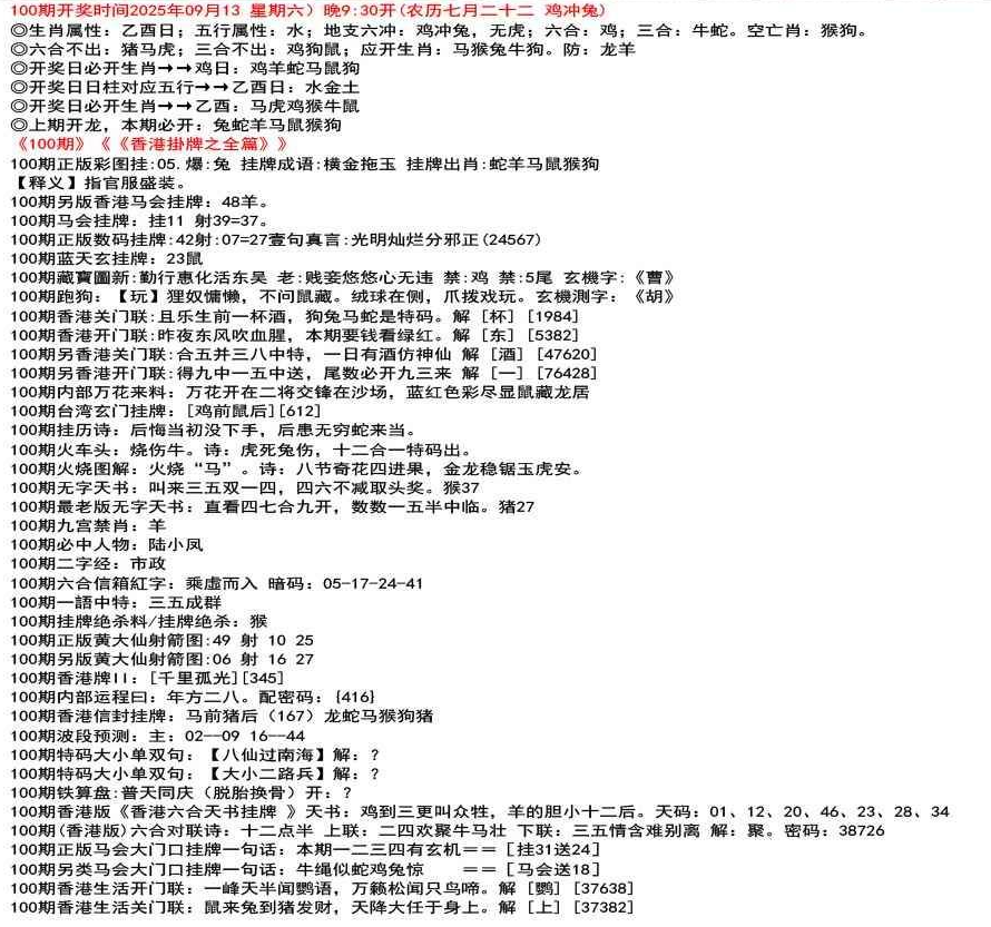 111期开奖时间2022年12月29日(星期四) 晚9:30开 (腊月初七 龙冲狗)